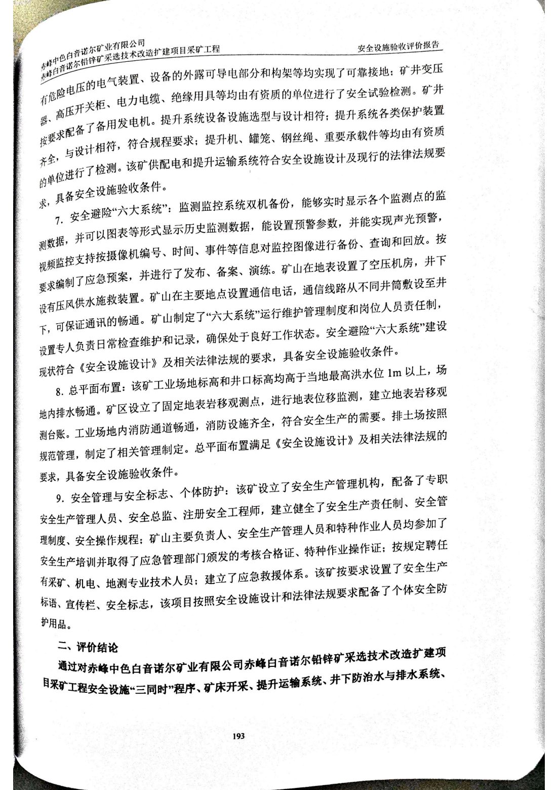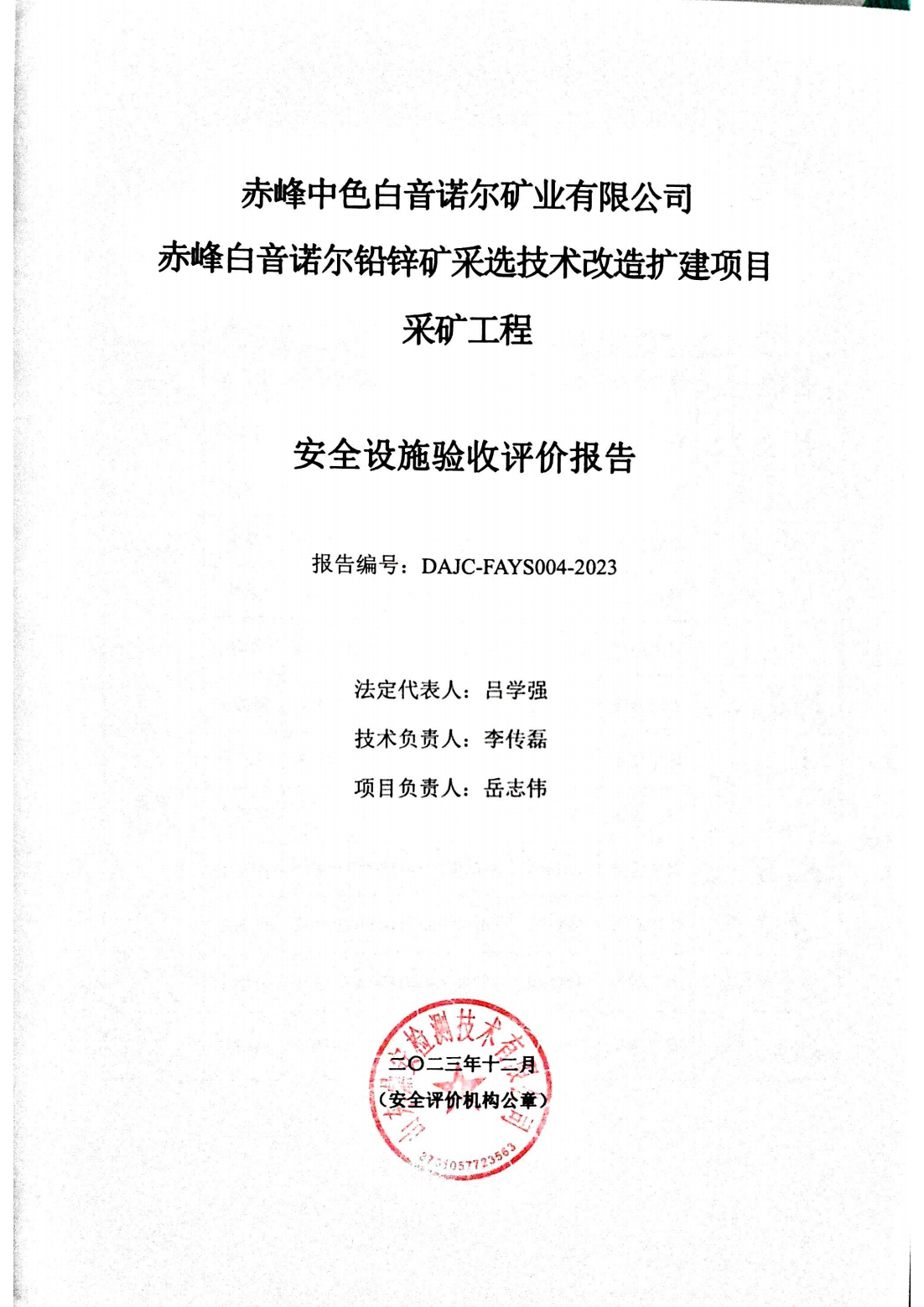 赤峰中色白音諾爾礦業(yè)有限公司 赤峰白音諾爾鉛鋅礦采選技術(shù)改造擴建項目 采礦工程安全設(shè)施驗收評價—網(wǎng)上公開
