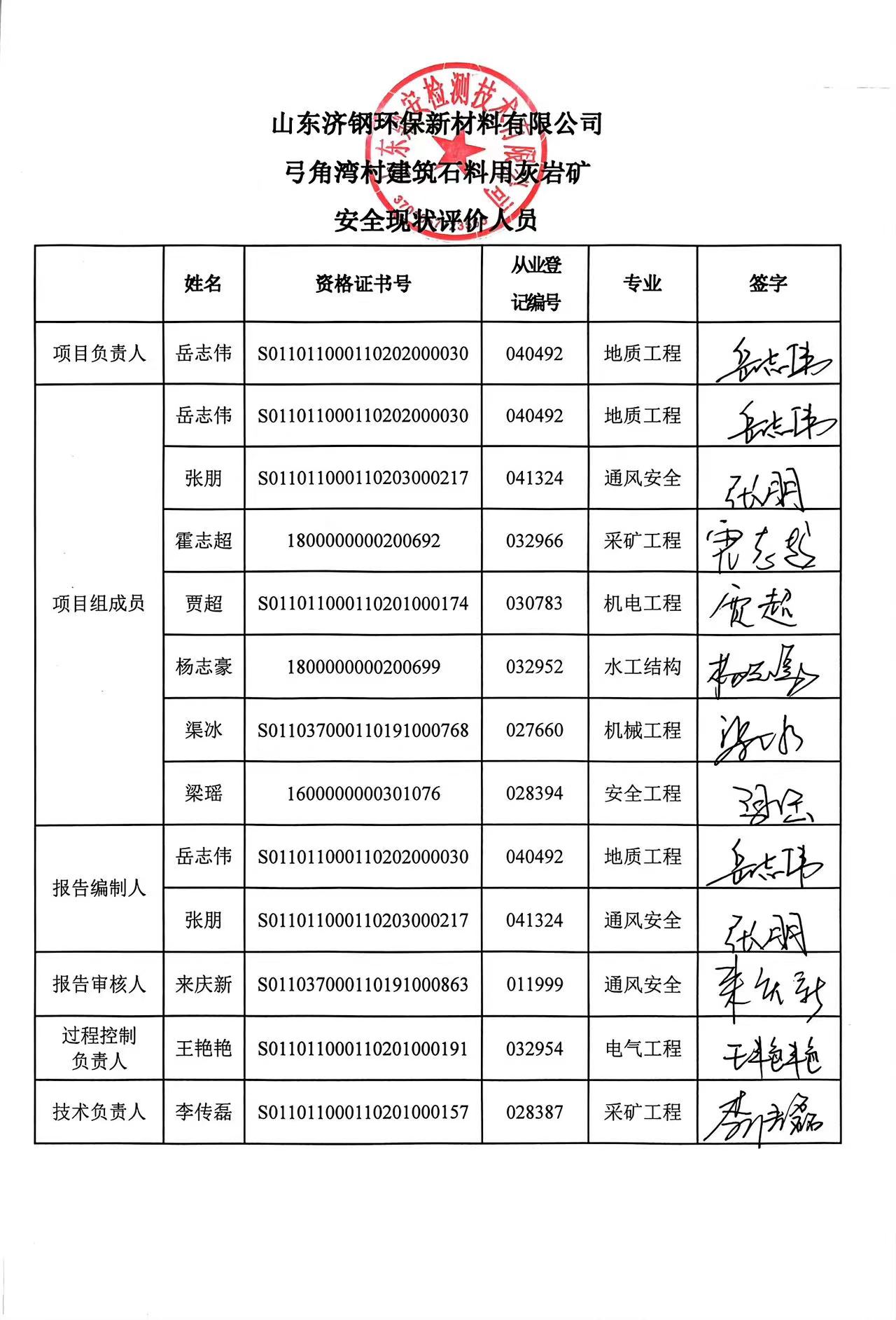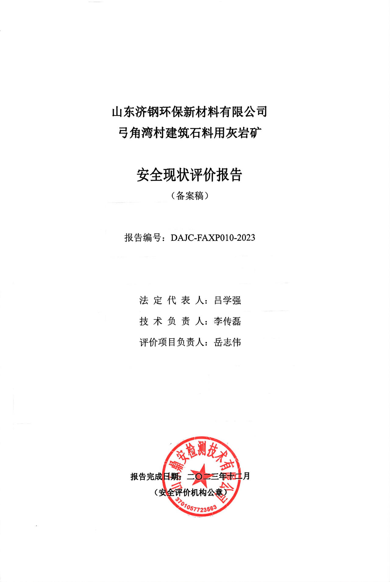 評(píng)價(jià)項(xiàng)目名稱(chēng) | 山東濟(jì)鋼環(huán)保新材料有限公司弓角灣村建筑石料用灰?guī)r礦安全現(xiàn)狀評(píng)價(jià) | |||||||