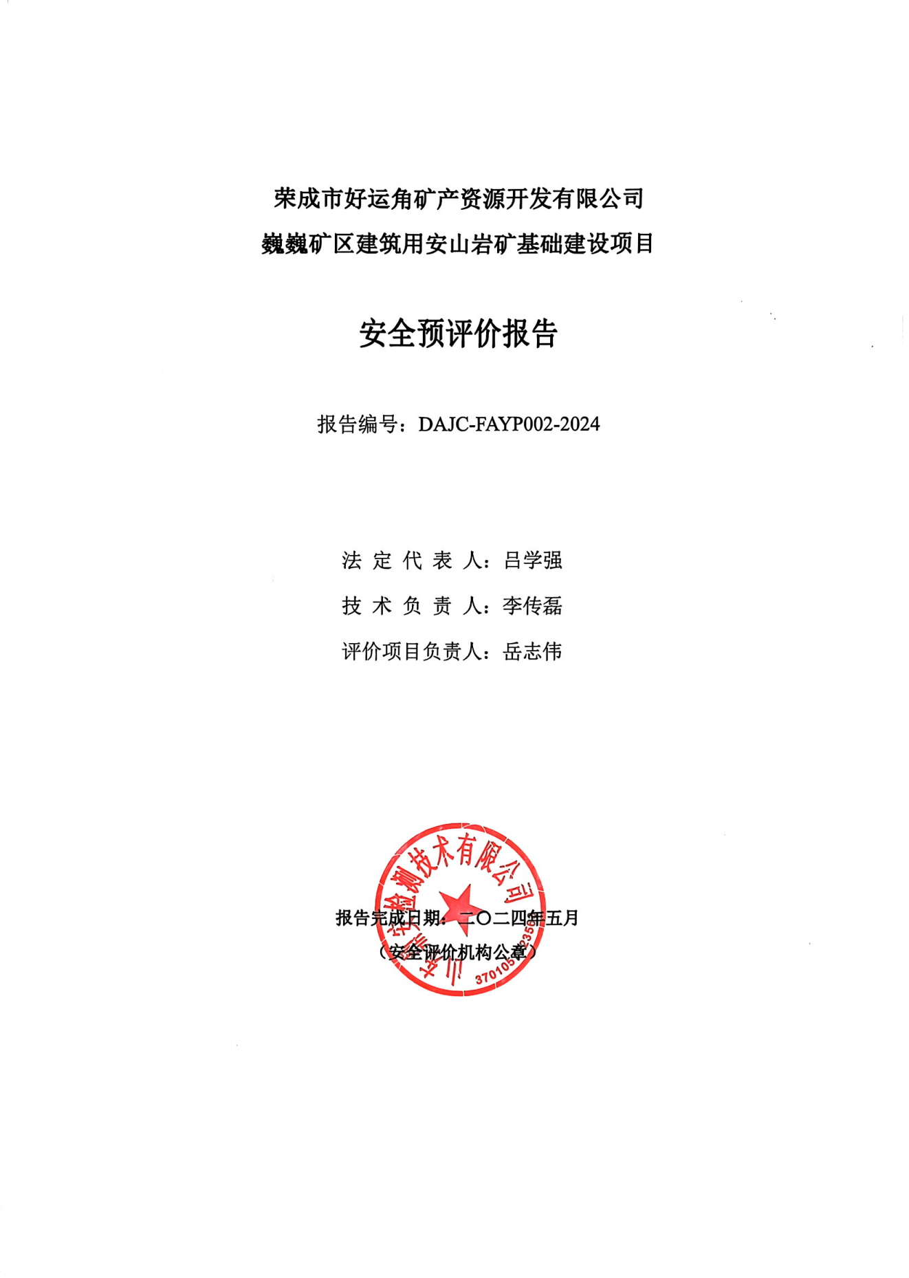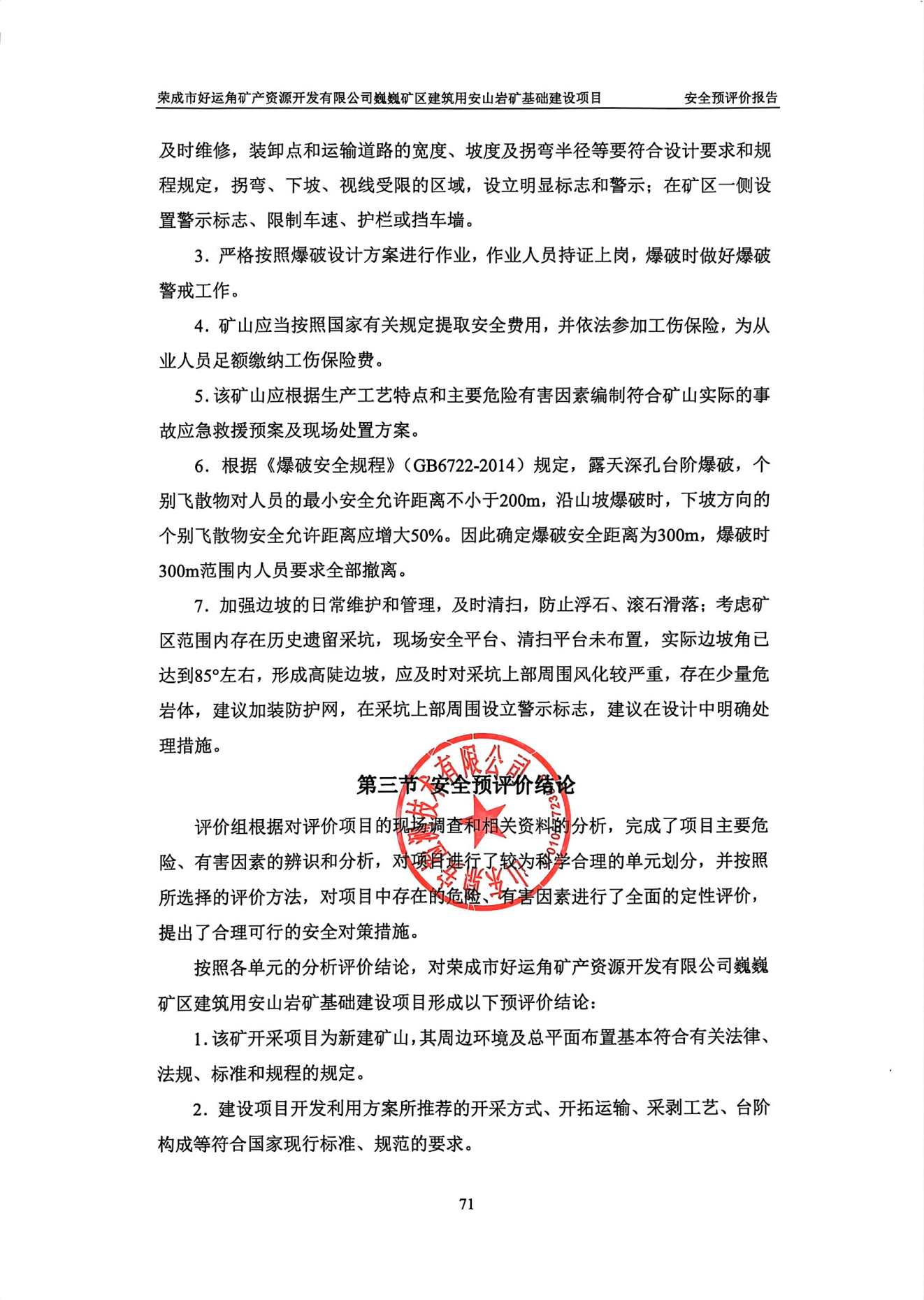 榮成市好運角礦產(chǎn)資源開發(fā)有限公司巍巍礦區(qū)建筑用安山巖礦基礎建設項目安全預評價報告