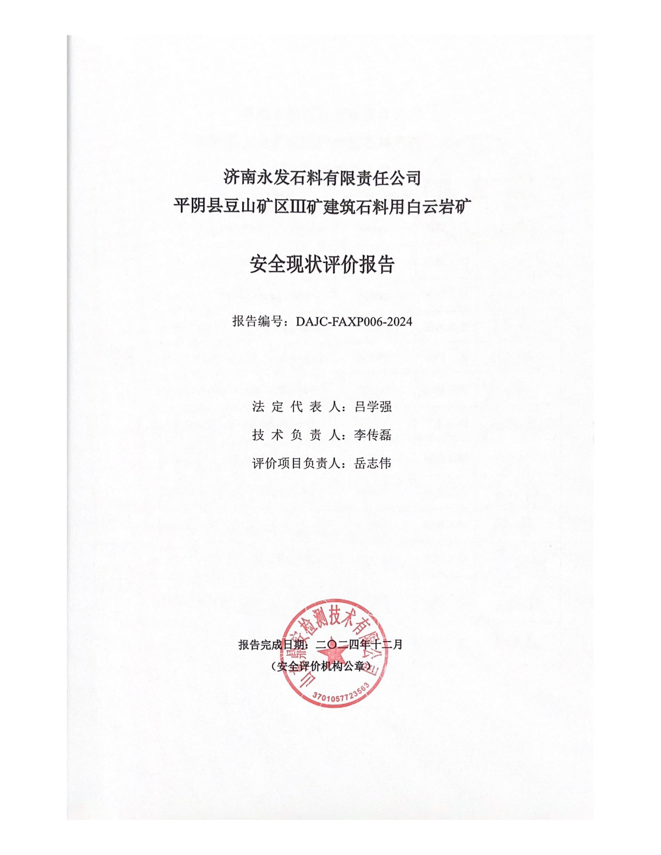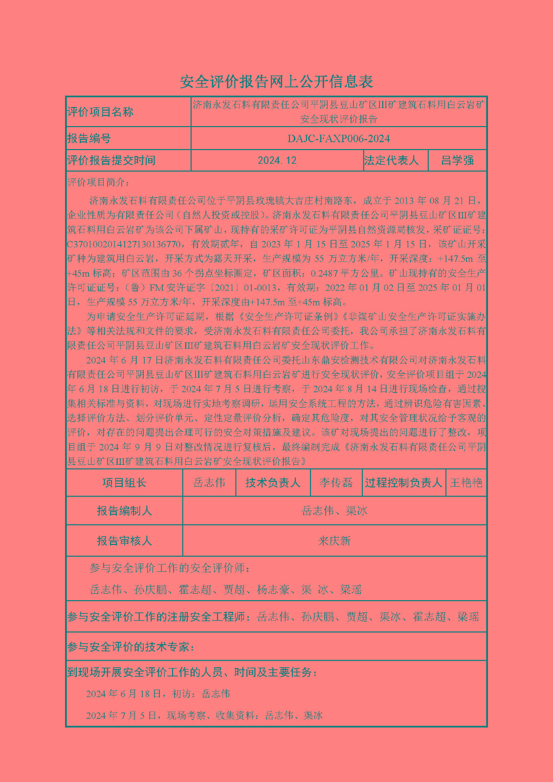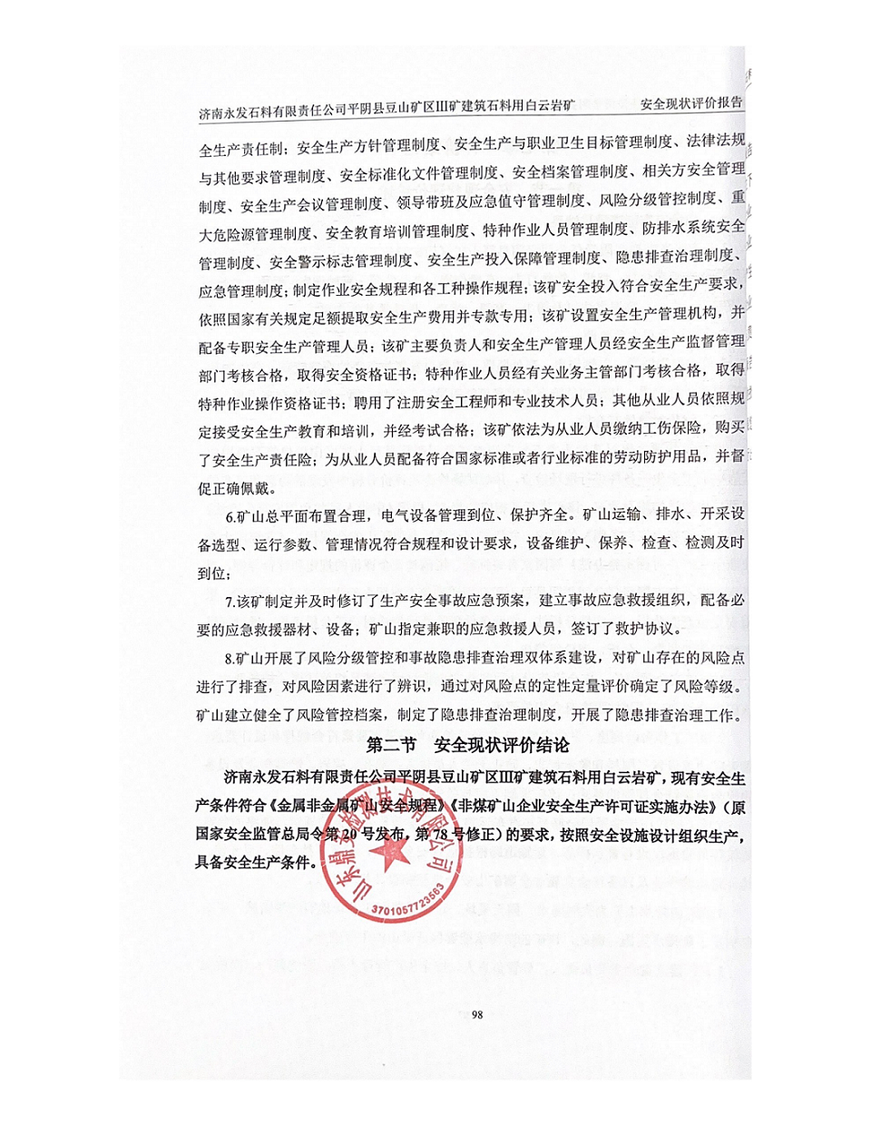 濟(jì)南永發(fā)石料有限責(zé)任公司平陰縣豆山礦區(qū)Ⅲ礦建筑石料用白云巖礦安全現(xiàn)狀評(píng)價(jià)-網(wǎng)上信息公開(kāi)