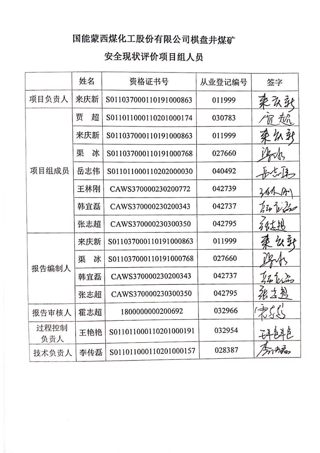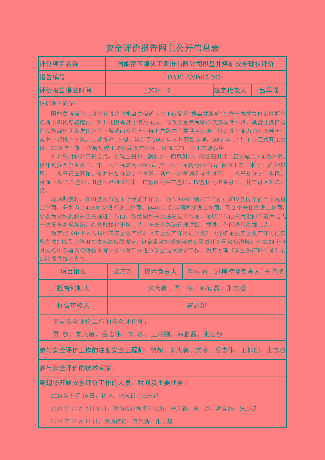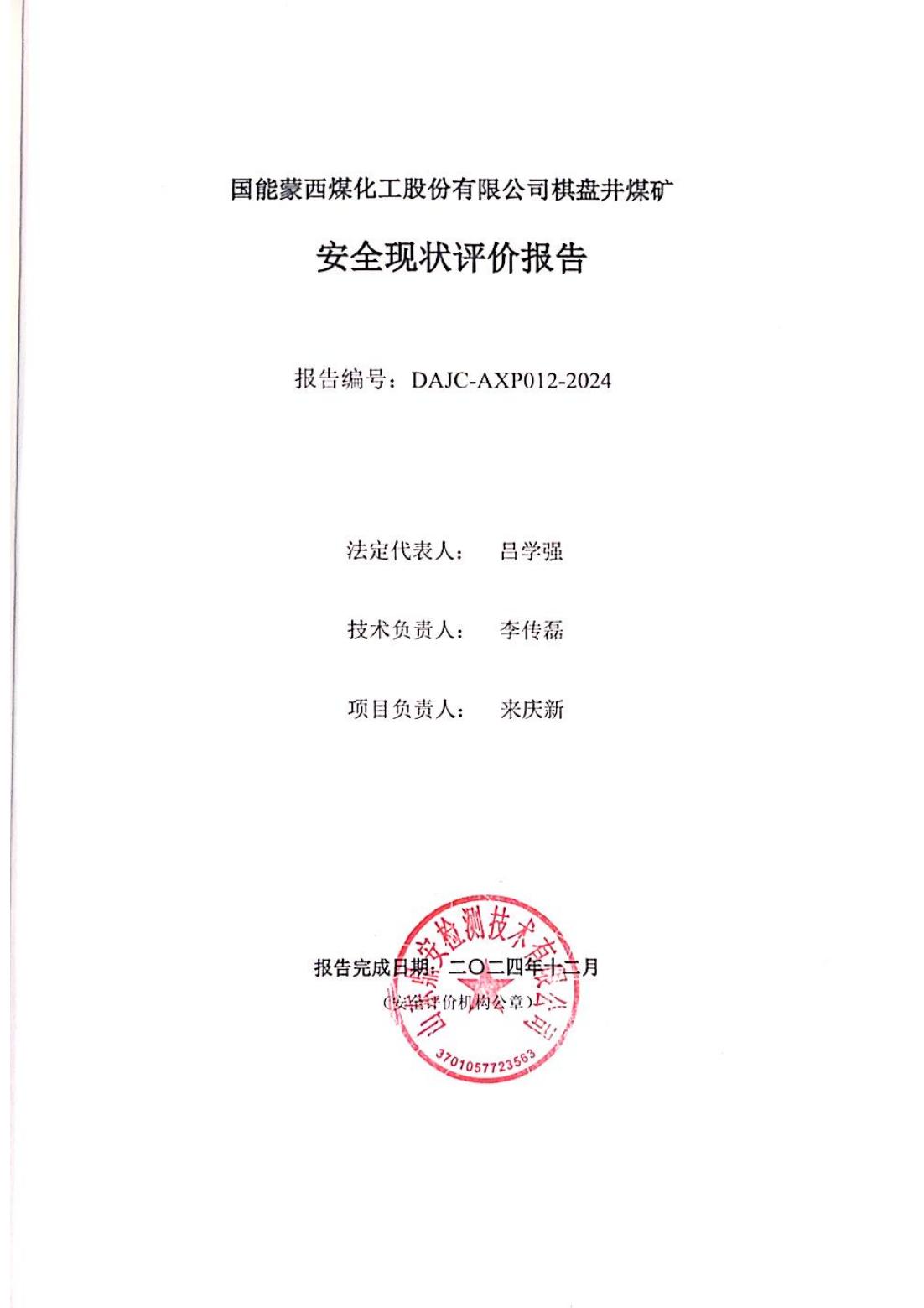 國能蒙西煤化工股份有限公司棋盤井煤礦安全現狀評價-網上公開信息