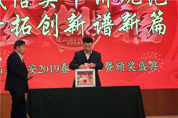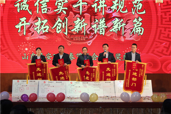 年會現(xiàn)場對先進(jìn)進(jìn)行了表彰,對公司范圍內(nèi)評選出的5個(gè)先進(jìn)部門、12名先進(jìn)干部、24名先進(jìn)個(gè)人以及11名杰出人物給予了表彰,在全場觀眾的共同見證下,分享這份榮耀,鼓舞員工2019共創(chuàng)新輝煌。抽獎(jiǎng)、游戲環(huán)節(jié)伴隨著節(jié)目助推一個(gè)又一個(gè)高潮,精彩的演出,博得了陣陣喝彩。整場年會在節(jié)目獎(jiǎng)?lì)C獎(jiǎng)中落下了帷幕,大家在和諧、溫馨的氛圍中為此次年會畫上了圓滿的句號。