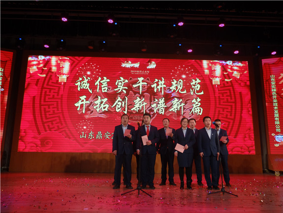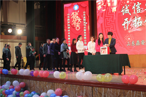 2019年2月1日,山東鼎安檢測技術(shù)有限公司全體員工及家屬、特邀嘉賓260余人歡聚一堂,喜迎新年。下午14時(shí),在全體家人的期盼中,伴隨著熱情歡快的開場舞蹈《陽光路上》,誠信實(shí)干講規(guī)范,開拓創(chuàng)新譜新篇!山東鼎安2019春節(jié)年會暨頒獎(jiǎng)盛典在祥云酒店正式拉開帷幕。